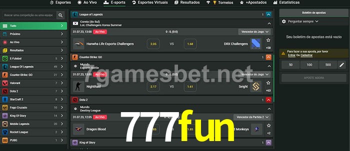 A aposta 777fun oferece aos jogadores a experiência mais conveniente de apostas em eSports!